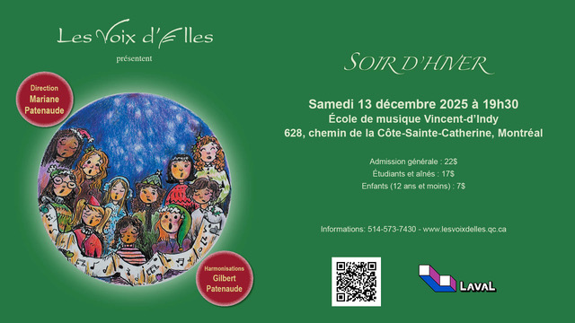 - 15 décembre 2024: Concert de Noël annuel des Voix d’Elles à la Salle Marie-Stéphane, 19h